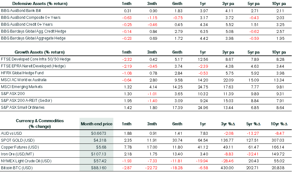 On the domestic front, a differing outlook on the likely interest rate trajectories between Australia and the US led domestic equities to endure a wave of selling in the final week of the year. Even so, the ASX 200 posted its third consecutive double-digit annual return in 2025—up 10.3% for the calendar year.